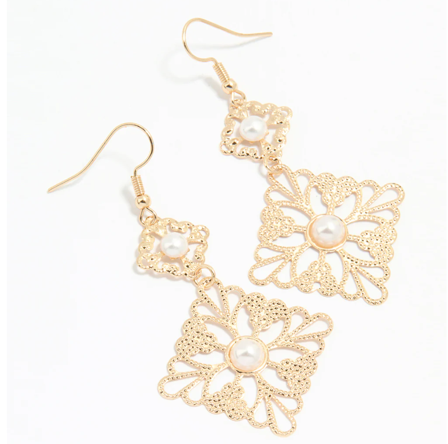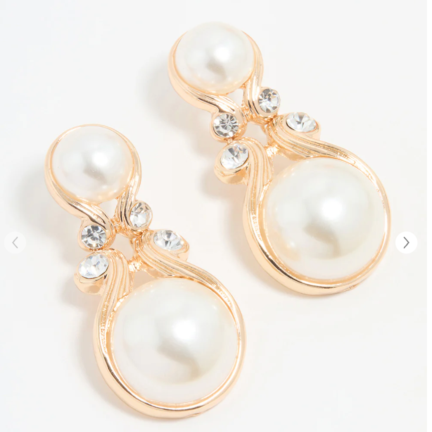 Gold Pearl Diamante Doorknocker Drop Earrings
