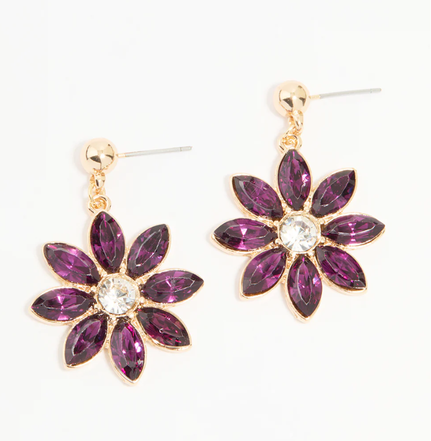 Gold Pink Diamante Hammered Flower Drop Earrings